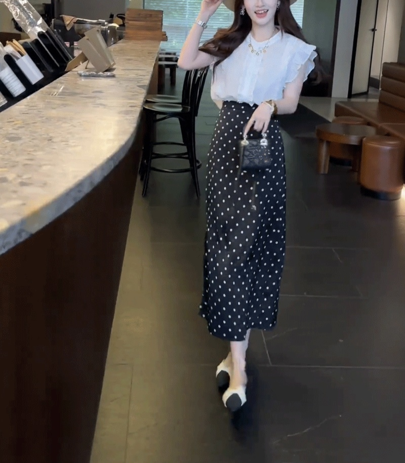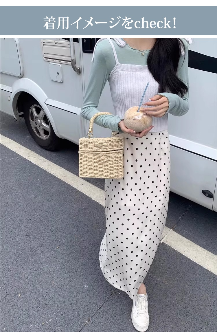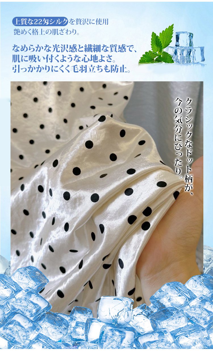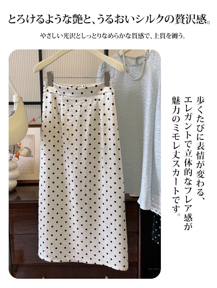 女性モデル着用ドット柄シルクスカート